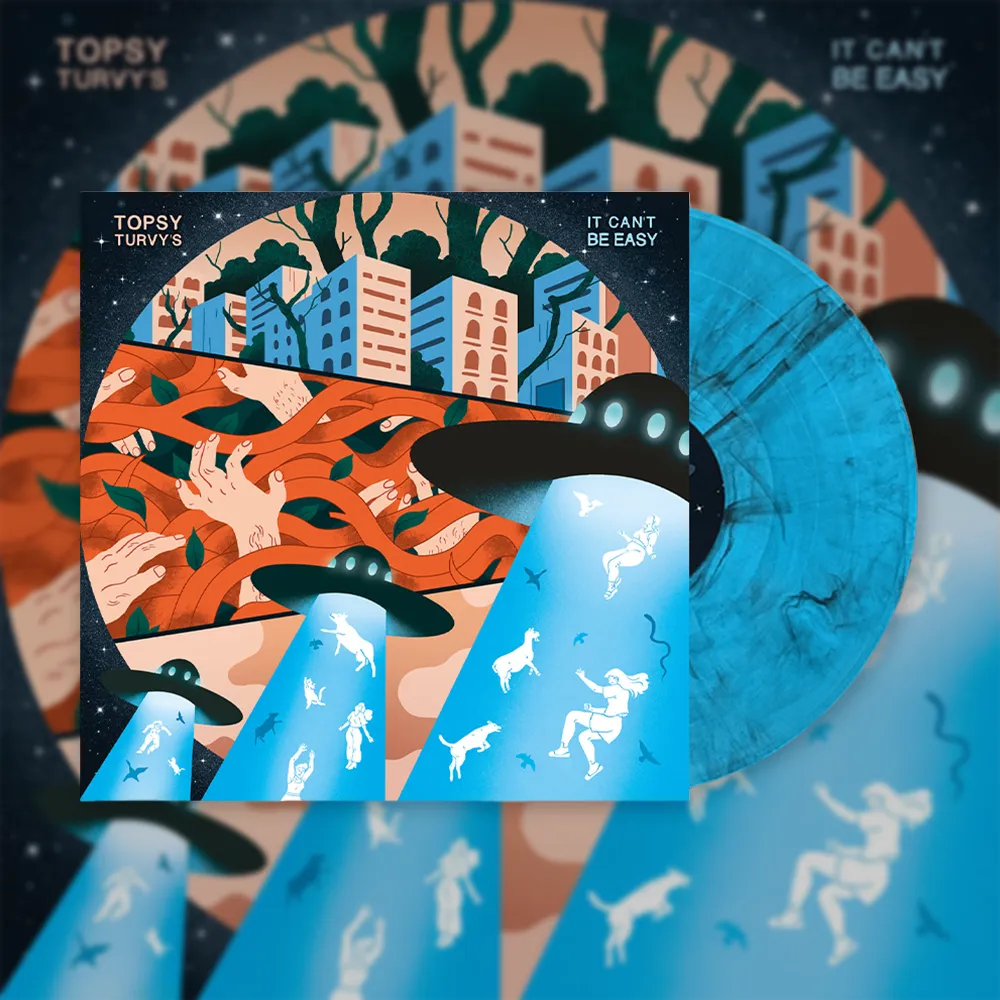 Crafted over nearly two years during the isolation of the pandemic, It Can’t Be Easy was recorded mostly at home, showcasing the band’s DIY spirit and creative resilience. Thematically, it expands beyond the alien invasion narrative to explore deeper personal themes—loss of control, identity, mortality, love, and human needs—while maintaining the sharp lyrical edge Topsy Turvy’s are known for.